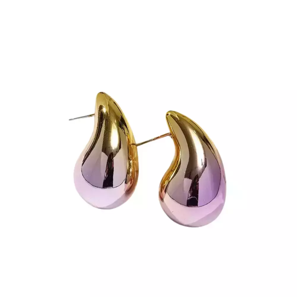 Pendientes gruesos de gota de agua para mujer, aretes gruesos de gradiente de Color metálico bicolor, joyería ligera