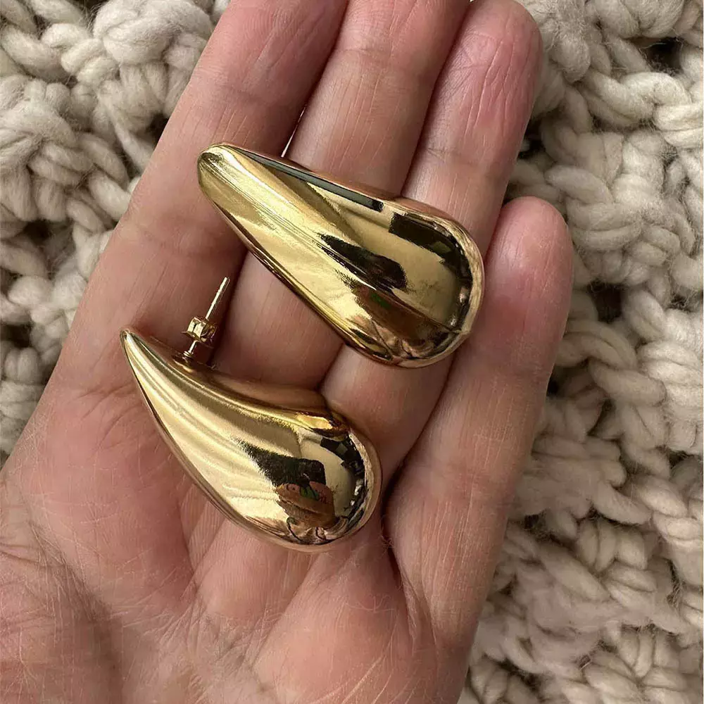 Aretes en forma de Maxi Gota Dorados en super tendencia, ligeros, tamaño perfecto para uso diario. Luce divina y unica con este diseño especial.