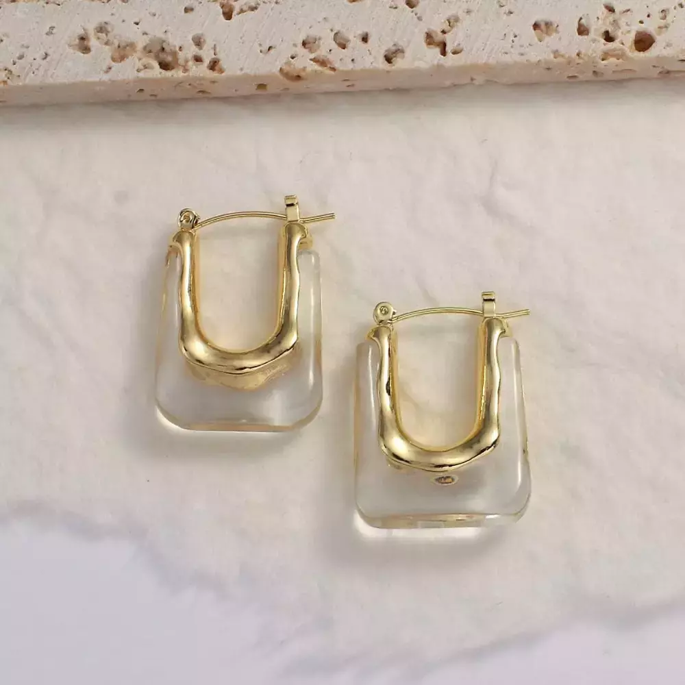 Aro de resina acrílica geométrica en forma de U, clásico, transparente, chapado en oro, aretes bohemios, minimalistas, para mujeres. Ideales para cualquier ocasion.