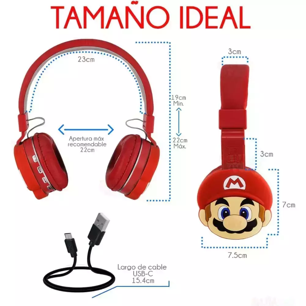 Diadema Inalambrica Bluetooth Mario Bros Roja
