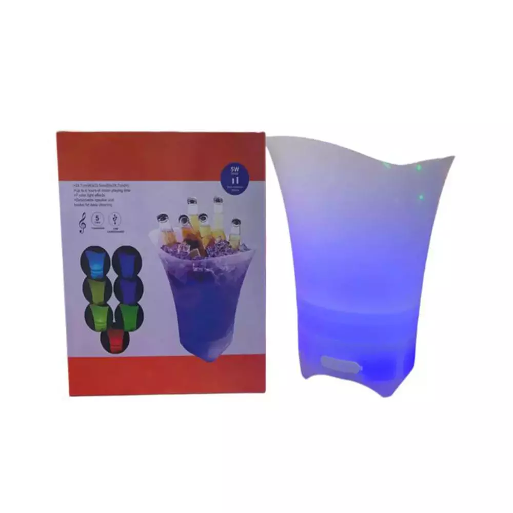 Cubeta Hielera Bocina RGB Para Botellas o Hielos Luz Led Plástico Utilizable como enfriador de tu botella favorita o también como hielera. Es portátil muy ligera pero también te brinda resistencia para el uso que requiere. Mantener frías tus bebidas favoritas.
