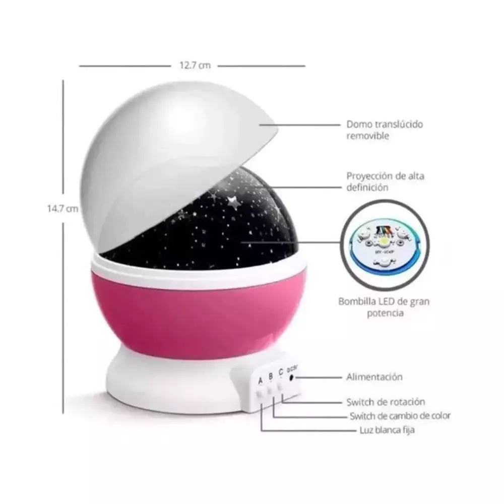 Lámpara de leds potente e ideal para ambientar habitaciones oscuras de manera relajante y agregar un paisaje diferente simulando una noche totalmente “estrellada”.