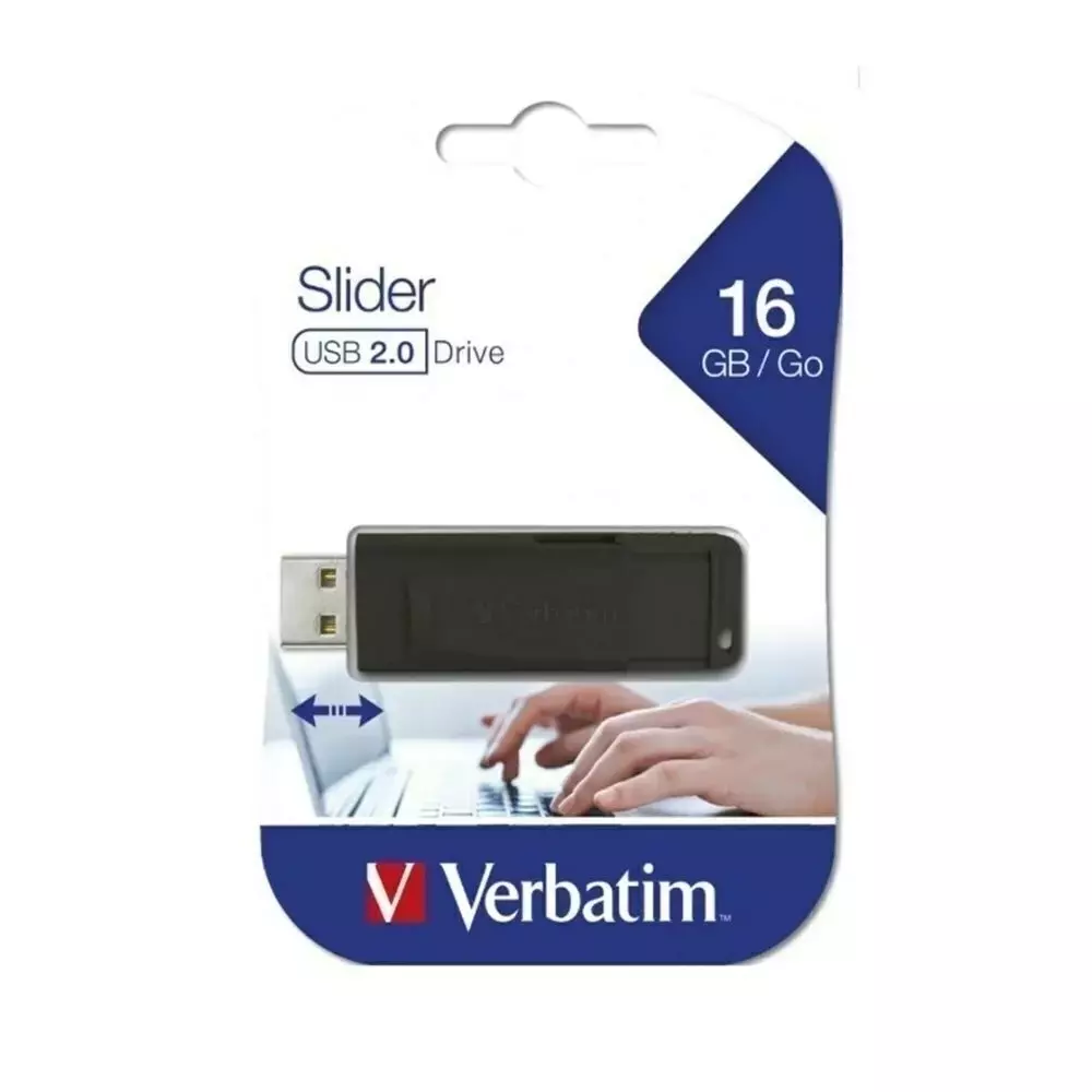 La memoria USB Slider de Verbatim cuenta con un mecanismo deslizante retráctil que protege la conexión USB cuando no está en uso. Sencilla y fácil de utilizar, tan solo tiene que deslizar la tapa para abrirla, conectarla a un puerto USB 2.0 y colocar sus carpetas y archivos.
