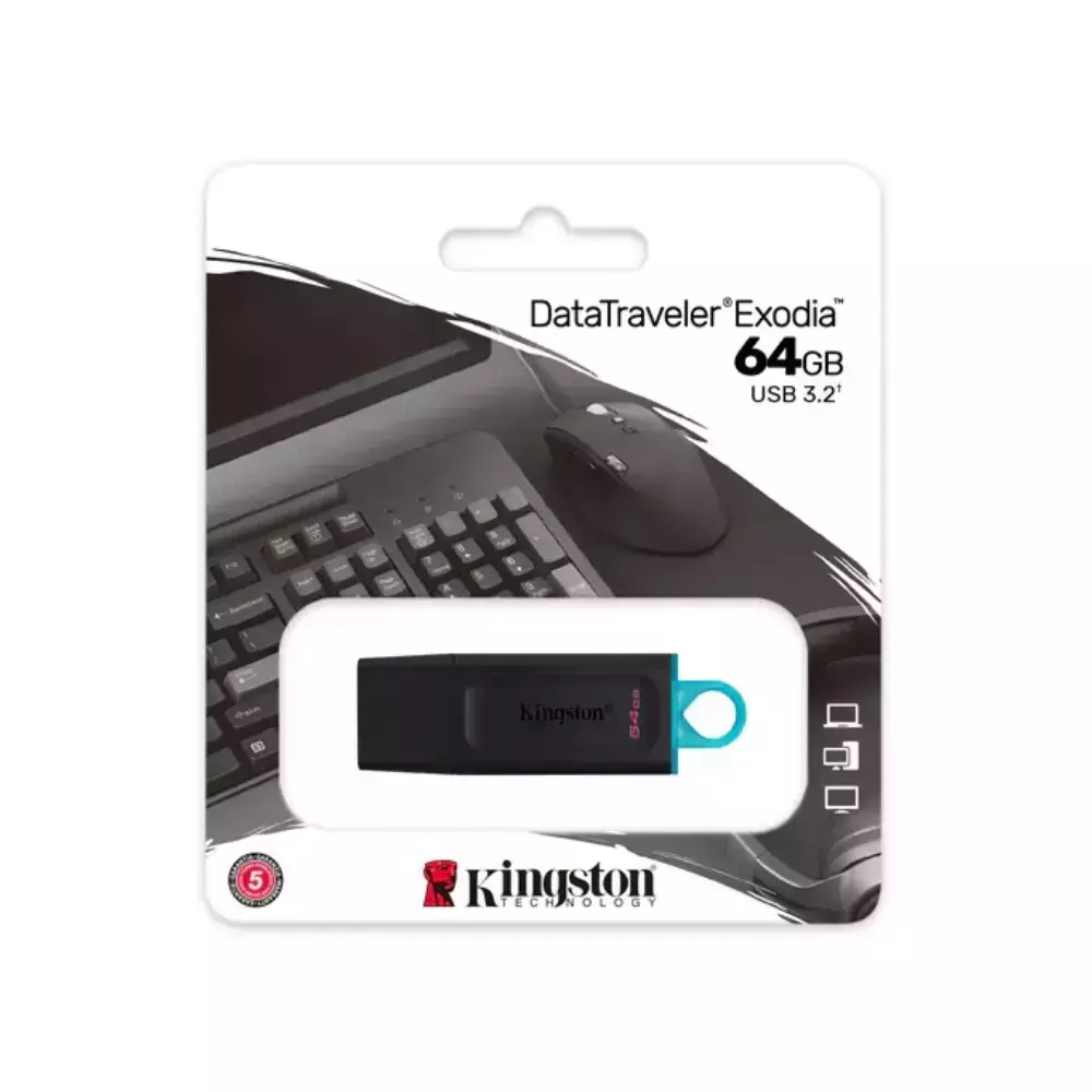 DataTraveler® Exodia™ de Kingston es una solución de almacenamiento compatible con USB 3.2 Gen 1 para computadoras portátiles, computadoras de escritorio, monitores y otros dispositivos digitales DT Exodia permite transferencias rápidas y almacenamiento conveniente de documentos, música, videos y más. Su diseño práctico y colorido lo hacen ideal para el uso diario en el trabajo, el hogar, la escuela o dondequiera que usted necesite llevar sus datos. El DT Exodia está disponible en capacidades de hasta 256GB1, y está respaldado por una garantía de cinco años, soporte técnico gratuito y la legendaria confiabilidad de Kingston®.