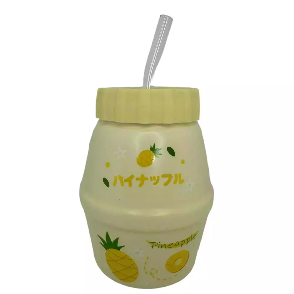 Vaso Kawaii Frutal Con Popote De Vidrio